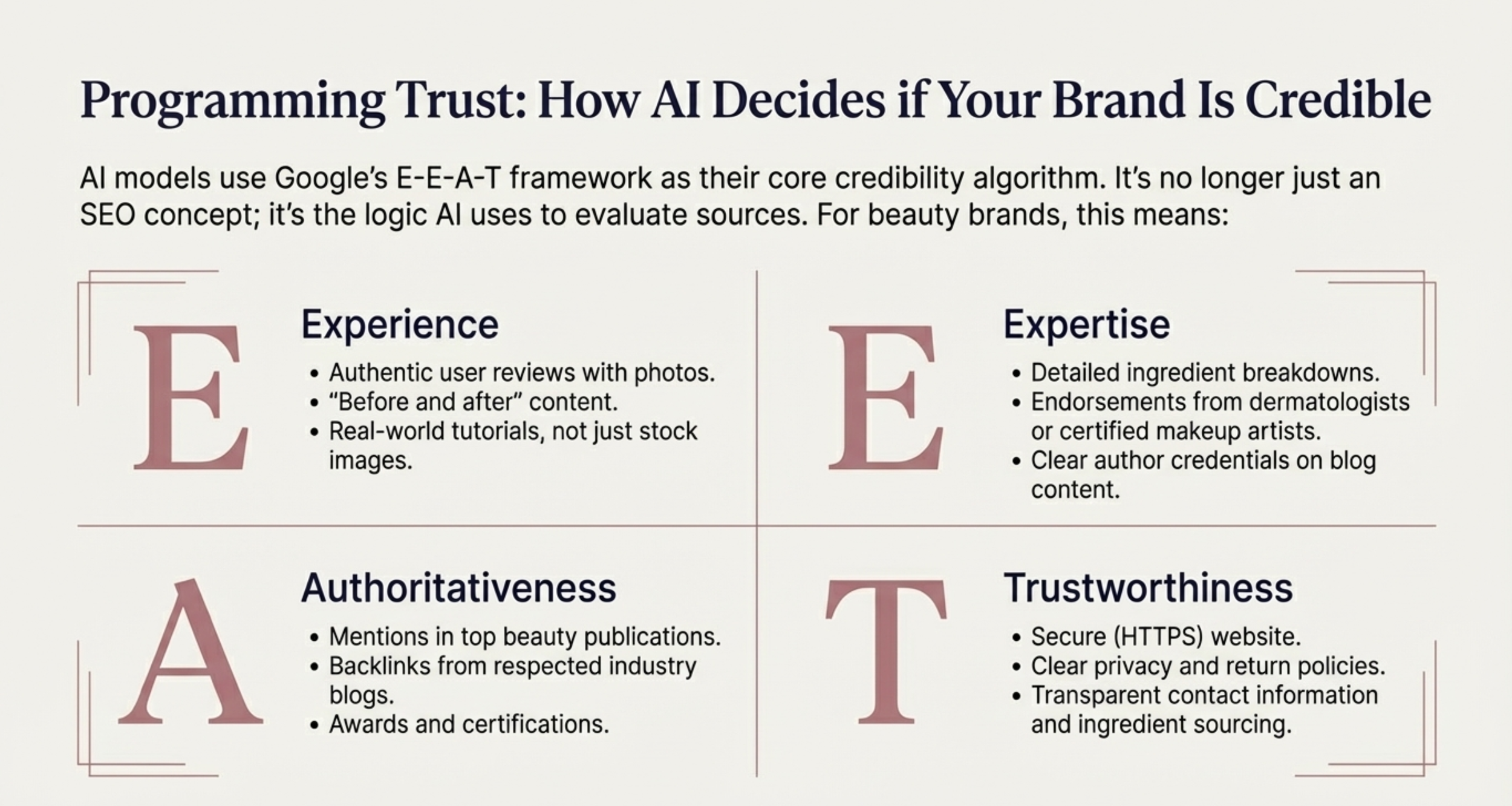 • Layer 2: Editorial Authority (The Expert): AI models weigh mentions from established publications (e.g., Allure, Vogue) heavily. A product cited in a "Best of" list by a trusted editor is treated as a verified fact by the algorithm.