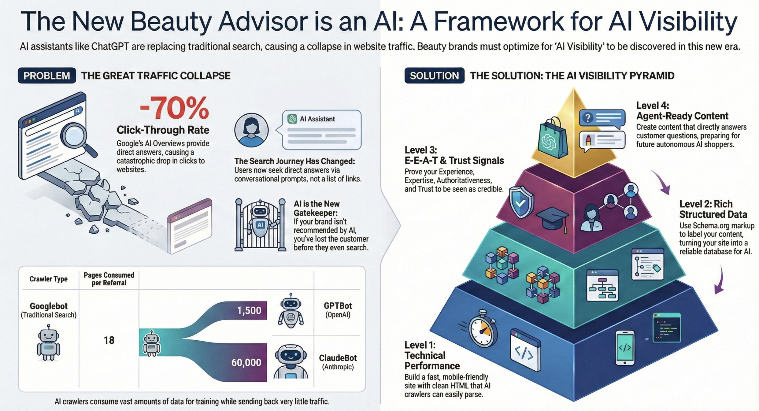 The beauty industry is experiencing a "tectonic shift" in consumer discovery. The traditional search funnel has collapsed into a "zero-click economy" where AI platforms like ChatGPT, Google Gemini, and Perplexity serve as the primary beauty advisors,,. In this environment, traditional SEO is no longer sufficient; brands must optimize for AI Visibility—the ability to be cited, recommended, and prioritized by Large Language Models (LLMs),.