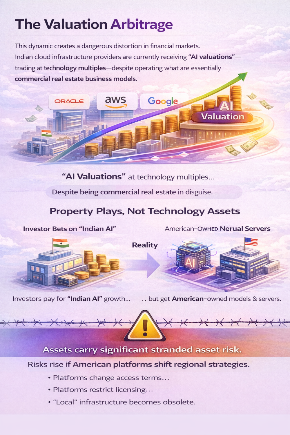 Investors are betting on "Indian AI," but they are buying exposure to companies that license American models and host American servers. These are property plays, not technology assets. If the underlying American platforms change their regional strategies, these "sovereign" assets face significant stranded asset risk.