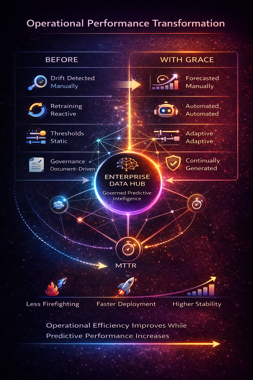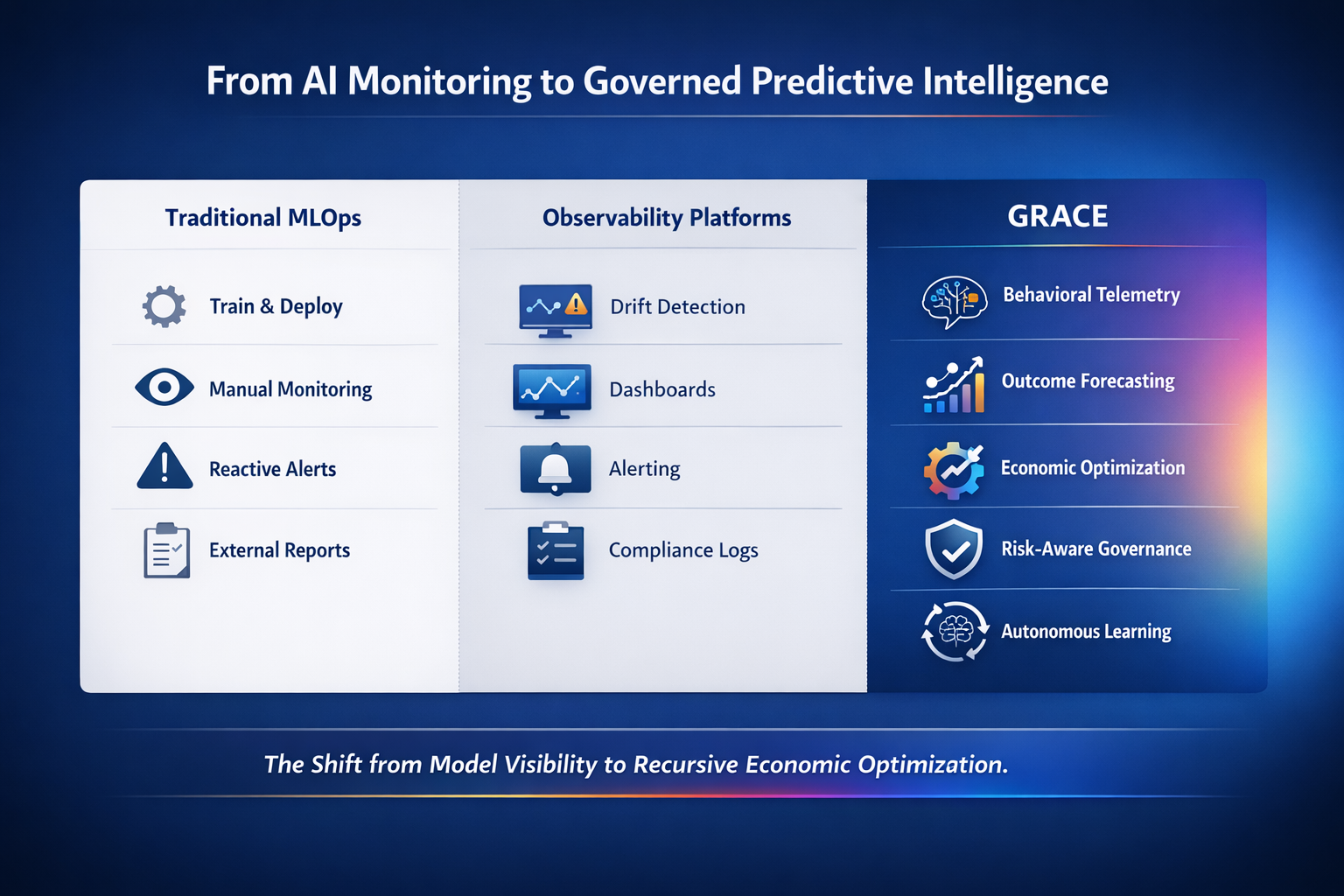 GRACE shifts the paradigm. Instead of simply detecting problems, it continuously forecasts downstream impact, optimizes decision policies, enforces governance constraints, and learns recursively from outcomes.